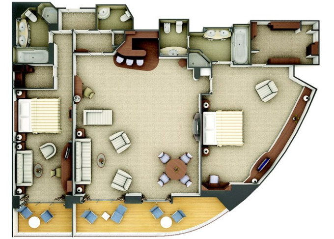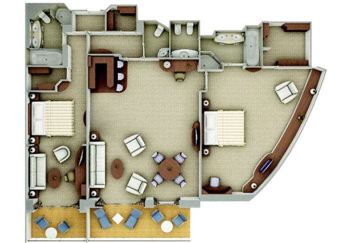 O2 - Owner's Suite 2 117 m² (včetně balkonu). Owners Suite O1 spojená s Vista Suite. 2 310 053 Kč 2 310 053 Kč za osobu