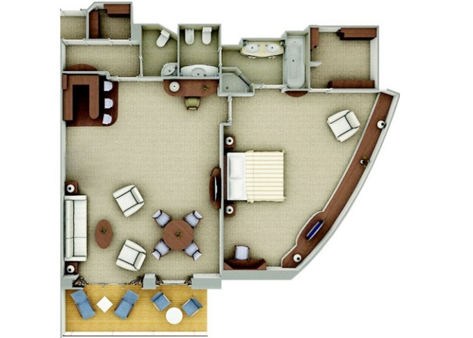 O2 - Owner's Suite 2 117 m² (včetně balkonu). Owners Suite O1 spojená s Vista Suite. 3 465 079 Kč 1 155 026 Kč za osobu