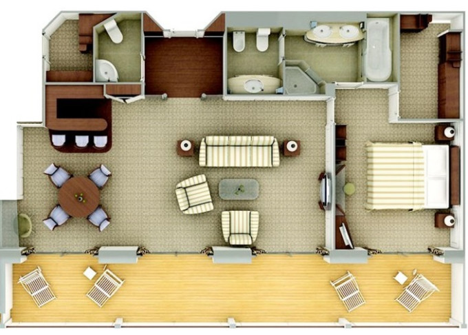 O1 - Owner's Suite 1 85 m² (včetně balkonu). Oddělená obývací časť, jedáleň, ložnice, vírívka. 1 864 077 Kč 932 039 Kč za osobu