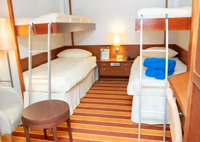| IB - Kajuta vnitřní 14,5 m². 4., 5. paluba. Max 2 osoby. | 30 517 Kč 15 258 Kč za osobu |