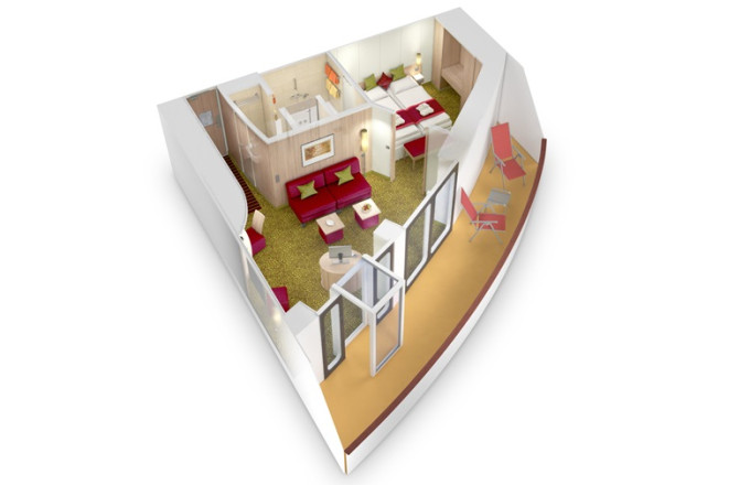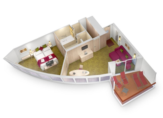 SA - Suite Deluxe PREMIUM od 56 m² / balkon od 12 m². Cenový model Premium. Max 5 osob. 166 364 Kč 83 182 Kč za osobu