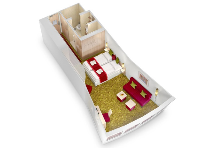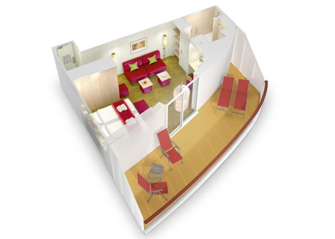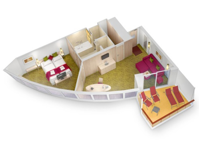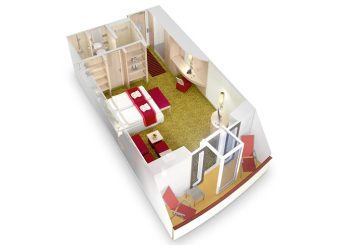 BP - Kajuta s balkonem Panorama PREMIUM 21,5 m² / balkon 4,5 m². Cenový model Premium. Max 3 osoby. 121 015 Kč 60 507 Kč za osobu