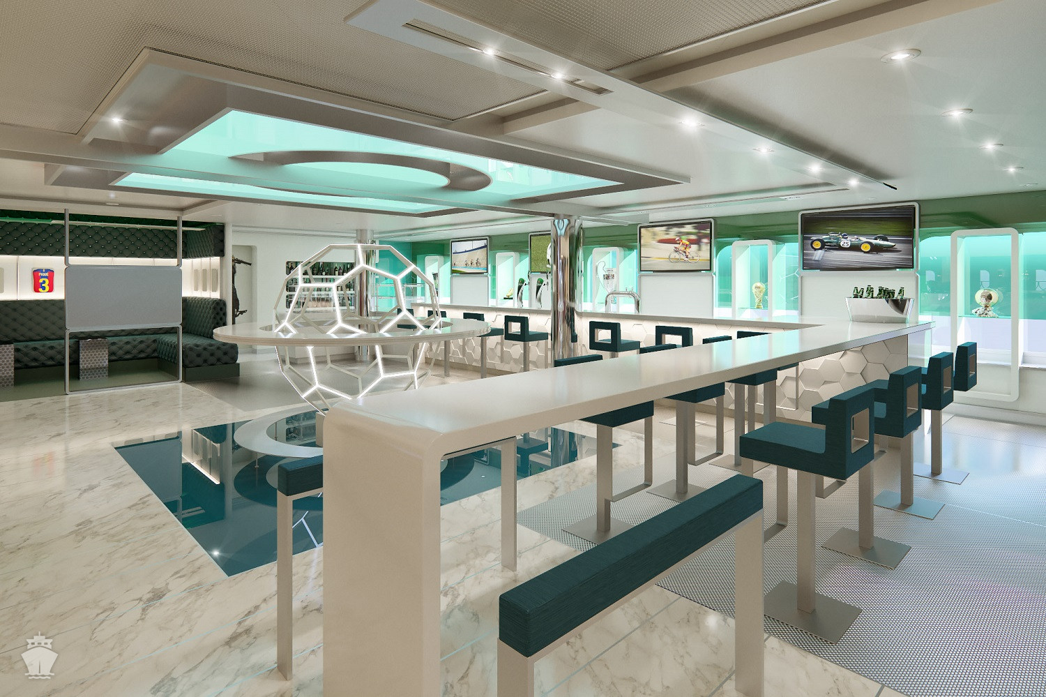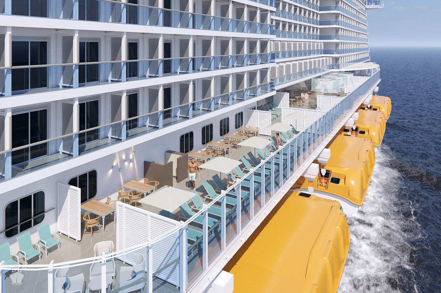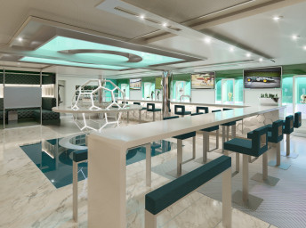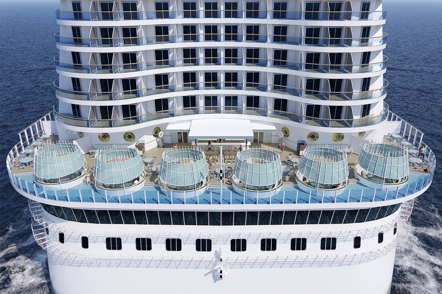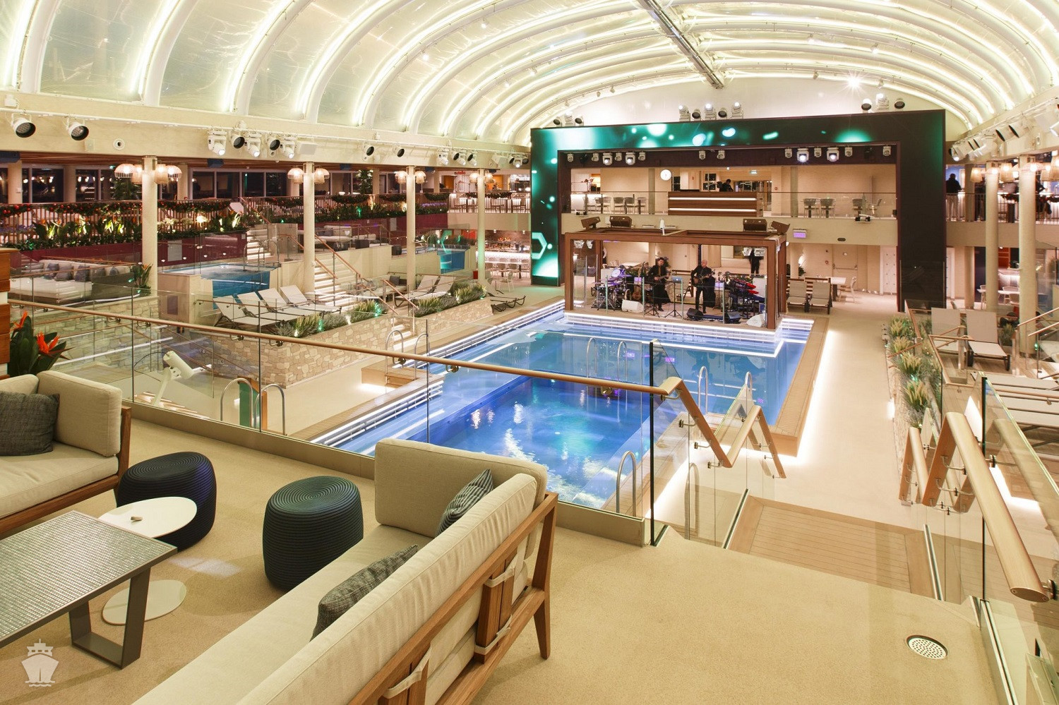• 3 bazény na horní palubě, 1 bazén s posuvnou prosklenou střechou