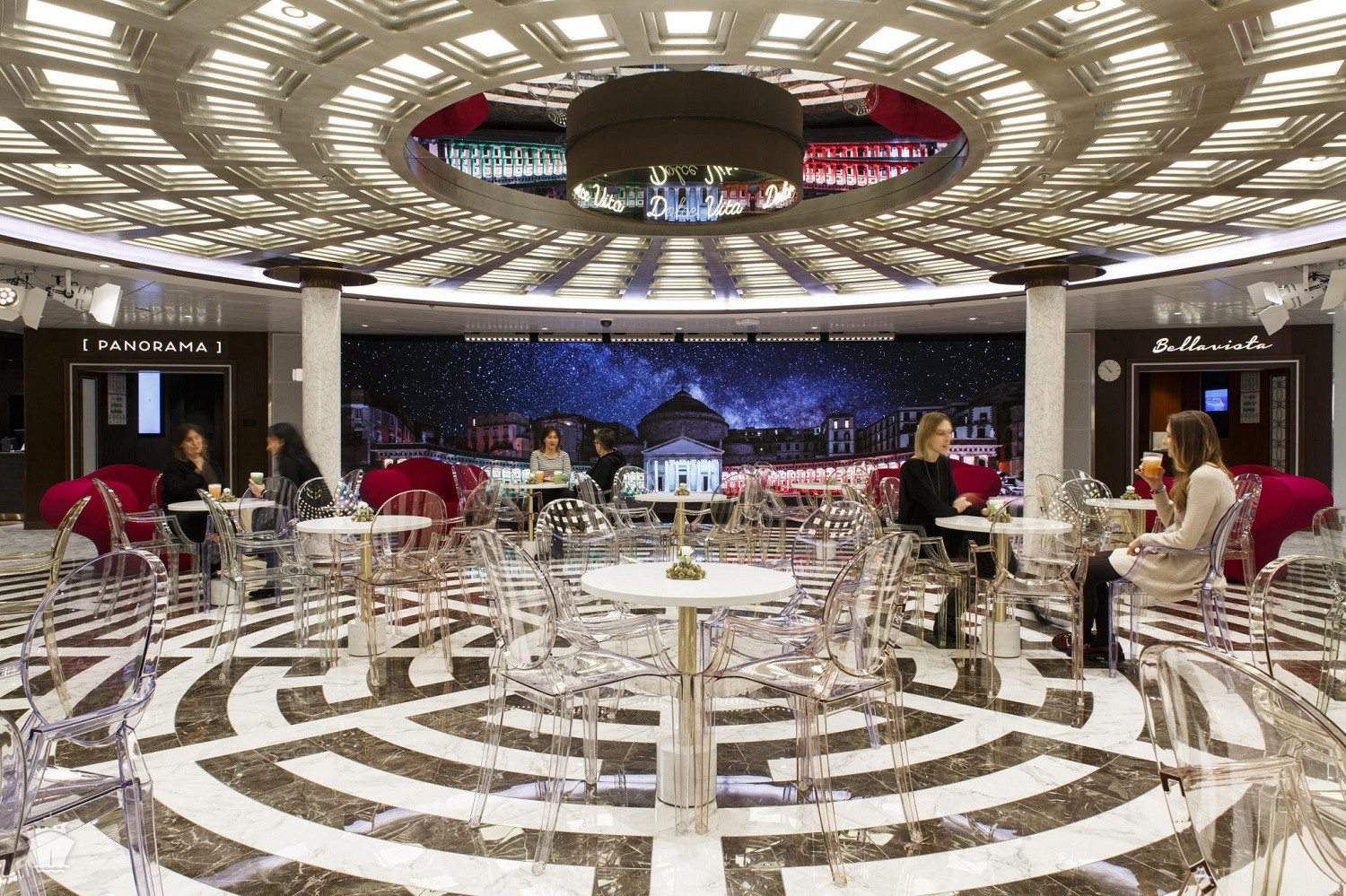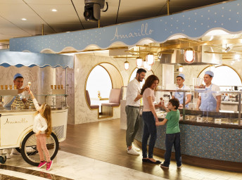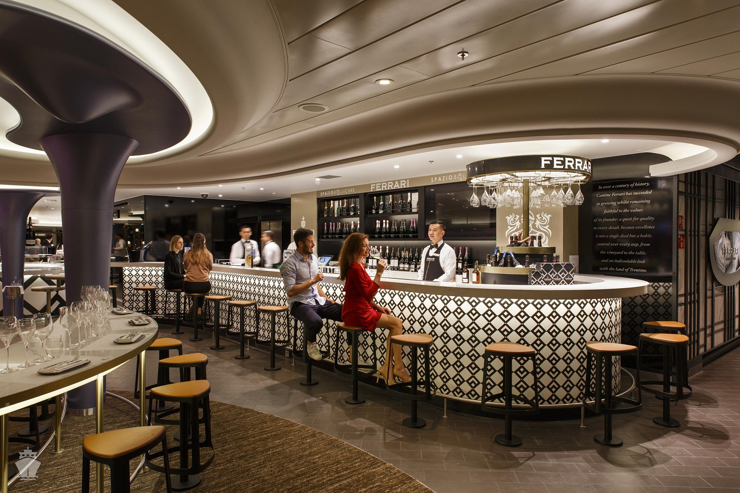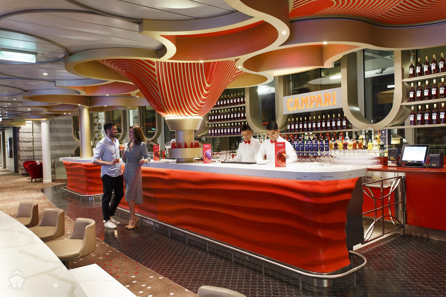 Tematické bary - Ferrari Spazio Bolicine Sekt bar, vinný bar Frescobaldi se someliérem, Campari bar, Aperol Spritz bar, Sunset bar, Nutella bar, Amarillo zmrzlinový bar, kavárna Café Vergnano