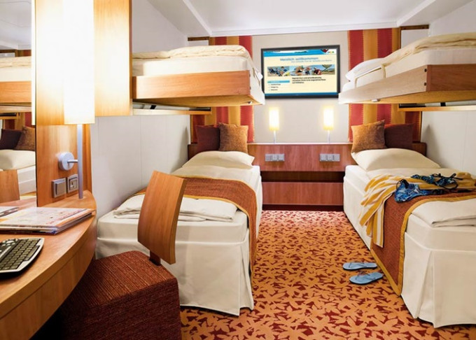 | CA - Vnější kajuta PREMIUM / omezený výhled 16,5 m². Neotevíratelné okno / omezený výhled. Cenový model Premium. Max 4 osoby. | 33 824 Kč 16 912 Kč za osobu | ||