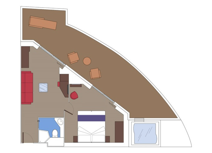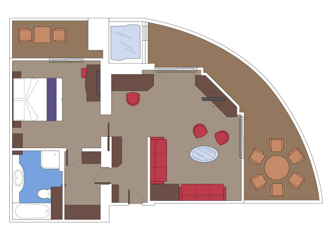 | YC3 - Yacht Club Royal Suite 58 m² + rohový balkon s vířivkou 70 m². Oddělená obývací část a ložnice, šatník, koupelna s vanou a sprchou. 15. paluba. Cenový model MSC Yacht Club. | 516 207 Kč 129 052 Kč za osobu |