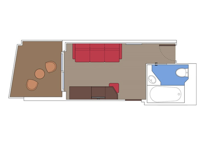 - ubytování v plně vybavené kajutě: vlastní koupelna se sprchou a WC, interaktivní TV, telefon, trezor, vysoušeč vlasů, regulovatelná klimatizace, minibar (za poplatek), Wi-fi (za poplatek)