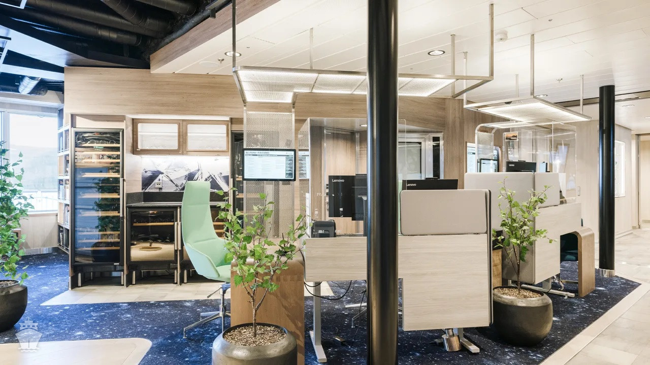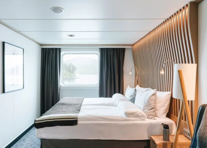 Na interiéry lodi byly použity převážně přírodní materiály jako kámen, dřevo a vlna. V kombinaci se severským dizajnem tak vnikly úžasné prostory, které pozitivně působí na každého cestujícího.