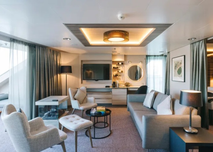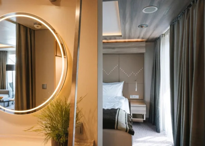 Na lodi jsou hostům k dispozici kajuty s oknem nebo kajuty s balkónem a dále luxusní apartmá s vlastní vířivkou a nádherným výhledem.