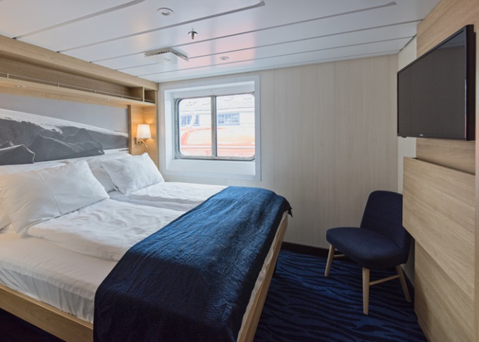 | P2D - Vnější kajuta Arctic Superior 14-15 m². Neotevíratelné okno s omezeným výhledem. Tv, varná konvice. Max 2 osoby. | 350 066 Kč 175 033 Kč za osobu | ||
