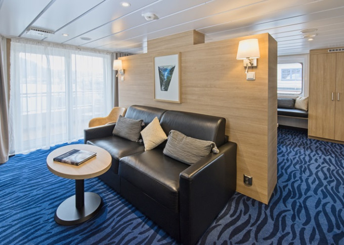 | MX - Expedition Owners Suite s balkonem 32-33 m². Balkon, obývací část, TV, minibar, kávovar, varná konvice, stereo. | 725 136 Kč 362 568 Kč za osobu | ||
