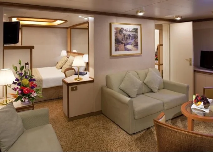 | S6 - Vista Suite s balkonem 45 m² (včetně balkona). Výhody Suite. Max 3-4 osoby (gauč + horní lůžko). | 93 505 Kč 46 752 Kč za osobu |