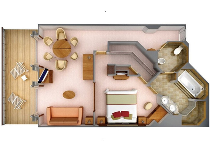 | DX - Deluxe Veranda Suite 29 m² + balkon 6m². Ložnice s oddělitelnou obývací částí. Centrální umístění na palube. | 636 392 Kč 318 196 Kč za osobu | ||