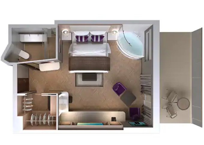 | H6 - The Haven Aft-Facing Penthouse 50 m² / balkon 4 m². Výhody The Haven. 18. paluba - vpředu, centrálně. Max 4 osoby. | 434 500 Kč 217 250 Kč za osobu |