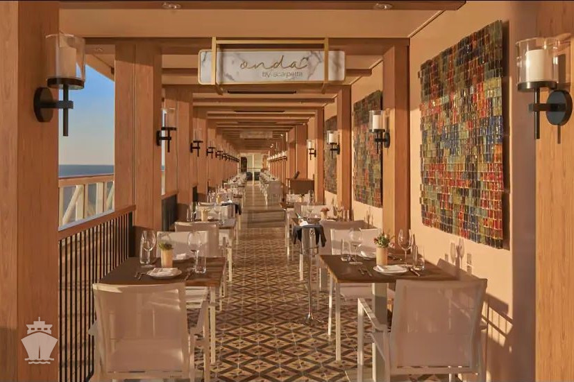 - Ocean Blue – mořské plody, Raw Bar, možnost venkovního stolování na promenádě