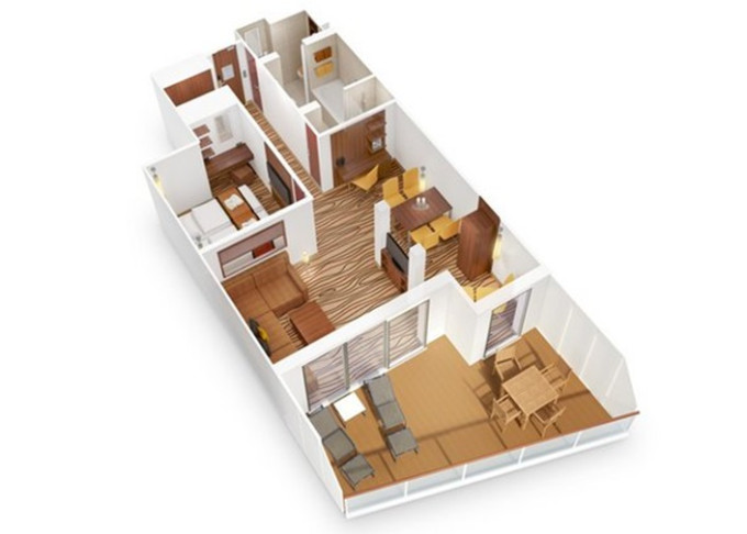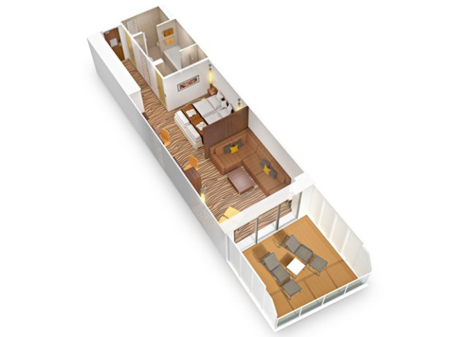 DL - Kajuta s verandou Deluxe Lounge PREMIUM 34 m² / balkon 6 m² / lounge 6 m². Cenový model Premium. Max 5 osob. 68 901 Kč 34 450 Kč za osobu