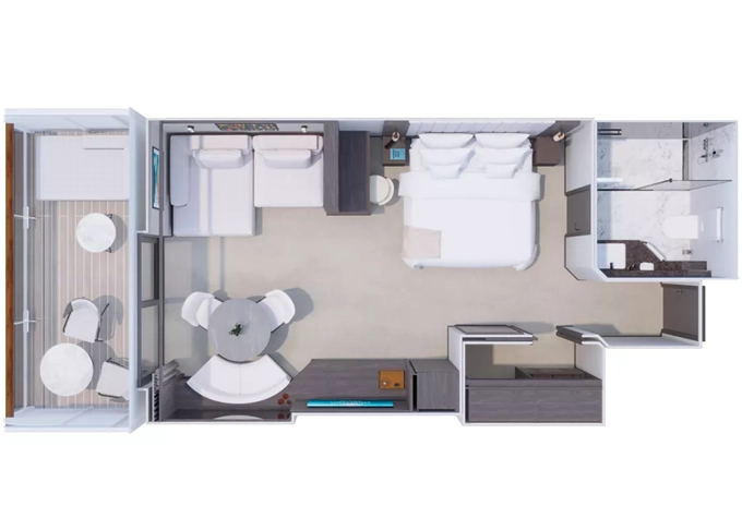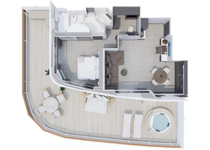 | Ocean Suites - Ocean Grand Terrace Suite Suita 28 m² + terasa 11 m². 6/7. paluba. Maximální kapacita 2 dospělé osoby a 1 dítě do 17,99 let. | 159 724 Kč 159 724 Kč za osobu |