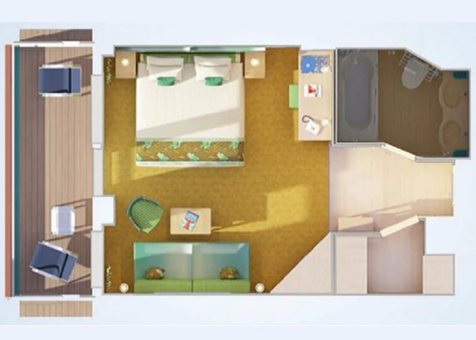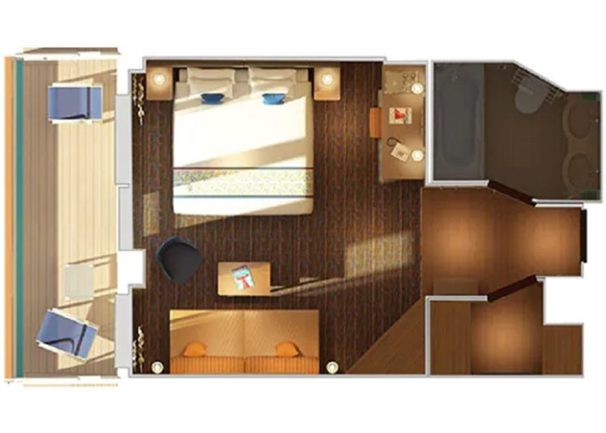 | HI - Kajuta Havana s väčším balkonem Aft Extended 17 m² / balkon 7 m². Vzadu. Tropický styl, vstup do exkluzivní zóny Havana. | 95 409 Kč 47 704 Kč za osobu | ||