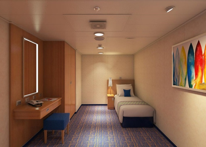 Vybavení ve všech kajutách: koupelna se sprchou, postele a dostatek úložných prostor, TV, telefon, fén, sejf, minibar, individuálně nastavitelná klimatizace, plážové osušky k použití během plavby.