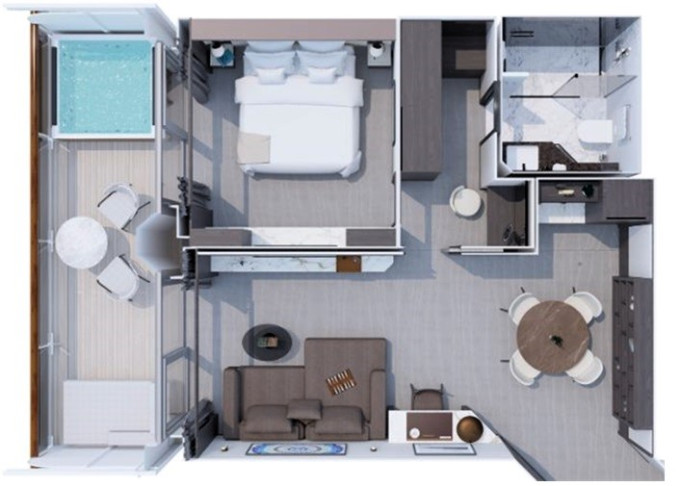 | Cove Residence Suita 56 m² + terasa 14-24 m² s vířivkou.Ložnice oddělená od obytné části. Maximální kapacita 3 dospělé osoby nebo 2 dospělé osoby a 2 děti do 17,99 let. | 1 262 762 Kč 315 690 Kč za osobu |