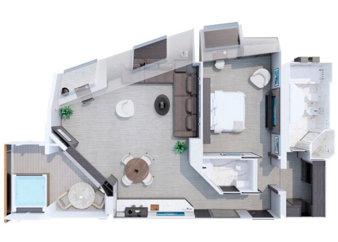 | Serenity Residence Suita 60 m² + terasa 53 - 66 m² s vířivkou.Ložnice oddělená od obytné části. Maximální kapacita 3 dospělé osoby nebo 2 dospělé osoby a 2 děti do 17,99 let. | 2 175 759 Kč 543 940 Kč za osobu | ||