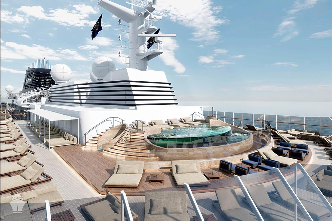 Ubytování na lodi v celkovém počtu 461 apartmá s vlastním balkonem či terasou je rozdělené do 3 základních třích: