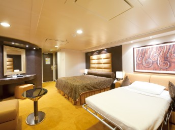 | YC2 - Yacht Club Executive & Family Suite s oknem 45-53 m². Neotevíratelné panoramatické okna. 12. paluba. Cenový model Aurea. | 71 913 Kč 71 913 Kč za osobu | ||