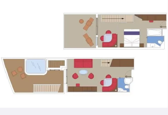 | YJD - Yacht Club Duplex Suite s vířivkou 46 m² + balkón 30 m². Vířivka. 2 podlaží, šatník, 2 koupelny (1 s vanou). Max 4 osoby. 16. paluba. Cenový model MSC Yacht Club. | 199 186 Kč 199 186 Kč za osobu |