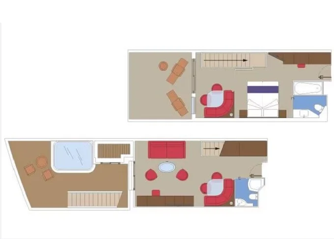 | YCD - Yacht Club Duplex Suite 46 m² + balkon 6 m². 2 podlaží, 2 koupelny (1 s vanou) Max 4 osoby. 16. paluba. Cenový model MSC Yacht Club. | 167 617 Kč 167 617 Kč za osobu | ||