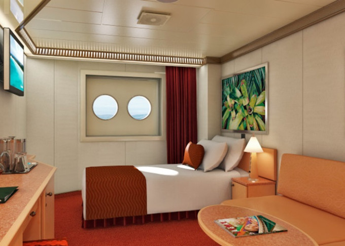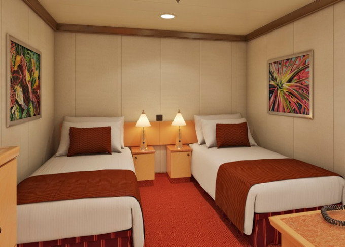 Základní vybavení všech kabin: koupelna se sprchou a WC, TV s plochou obrazovkou, telefon, elektrická zásuvka 110 AC, regulovatelná klimatizace, postele Carnival Comfort, vysoušeč vlasů, bezpečnostní schránka, mini chladnička (není ve všech kajutách).