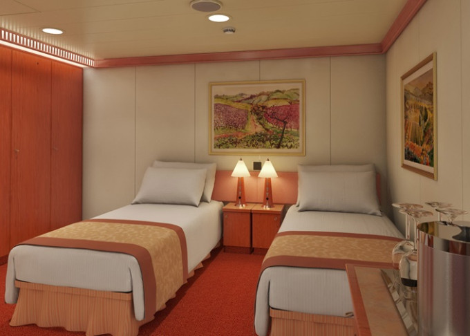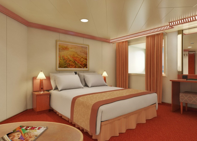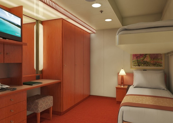 Základní vybavení všech kabin: koupelna se sprchou a WC, TV s plochou obrazovkou, telefon, elektrická zásuvka 110 AC, regulovatelná klimatizace, postele Carnival Comfort, vysoušeč vlasů, bezpečnostní schránka, mini lednička