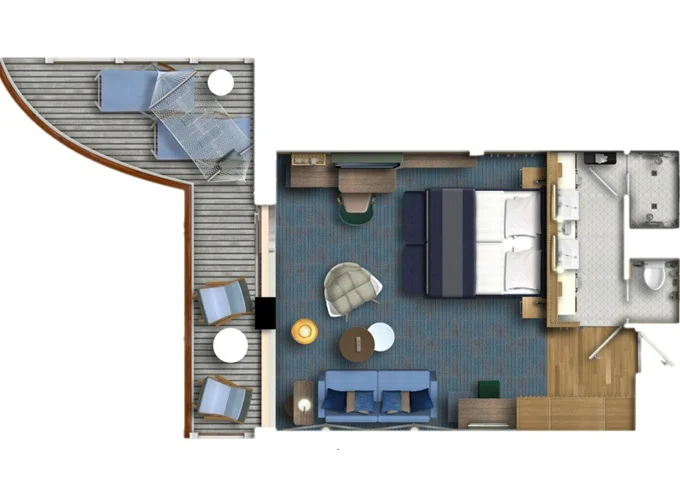 | JBAO - Junior Suite s balkonem 26 m² + balkon 7 m² se stolem. 10,11. paluba. Max 4 osoby. Výhody Junior Suite. | 255 509 Kč 127 754 Kč za osobu |