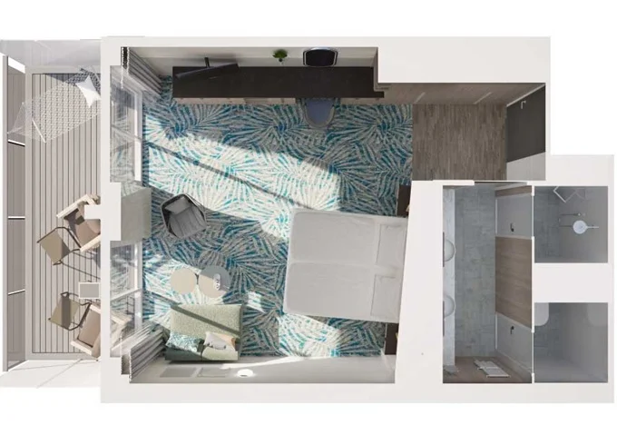 | JKCO - Junior Suite s balkonem C 26 m² + balkon 7 m² se židlemi a podnožkami. 7. paluba. Max 4 osoby. Výhody Junior Suite. | 254 732 Kč 84 911 Kč za osobu |