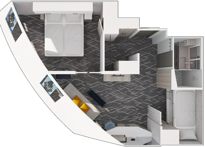 Kajuty vnitřní (též varianty single či rodinná kajuta), kajuty s oknem (též varianty single či rodinná kajuta), kajuty s balkonem (též variantsingle či rodinná kajuta), junior suite, suite.