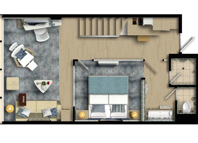 | SUHO - Himmel & Meer Suite 40 m² + prekrytá terasa 29 m² v patře se stolem, lehátky a s houpací sítí. Ložnice s obývací částí a jedálenským kútom. 15. paluba. Max 4 osoby. Výhody Suite. | 432 396 Kč 216 198 Kč za osobu | ||