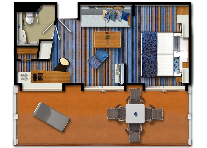 | JBAO - Junior Suite s balkonem 26 m² + balkon 8 m² se stolem. 10. paluba. Max 4 osoby. Výhody Junior Suite. | 317 645 Kč 105 882 Kč za osobu |