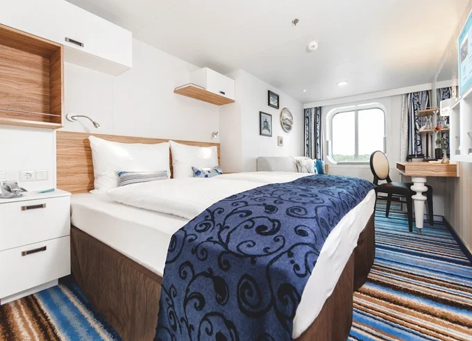 | AUBO - Kajuta s oknem kat. B 17 m². Neotevíratelné okno. 3. paluba. Max 4 osoby. | 138 753 Kč 69 377 Kč za osobu |