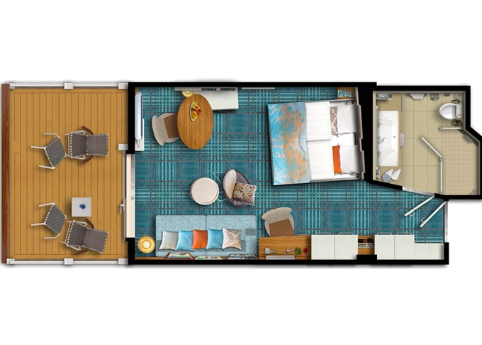 | BAEO - Kajuta s balkonem kat. E 17 m² + balkon 5 m². 6. paluba. Max 4 osoby. | 152 784 Kč 152 784 Kč za osobu |