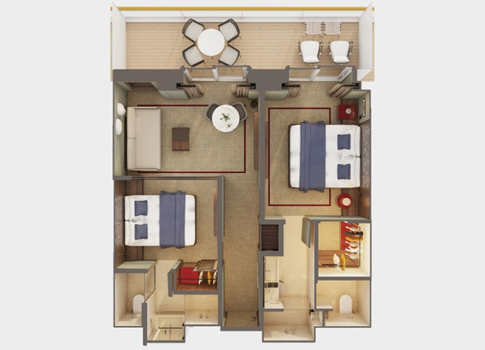 Suite: nejluxusnější a nejprostornější kajuty na lodi; možnost přistýlek