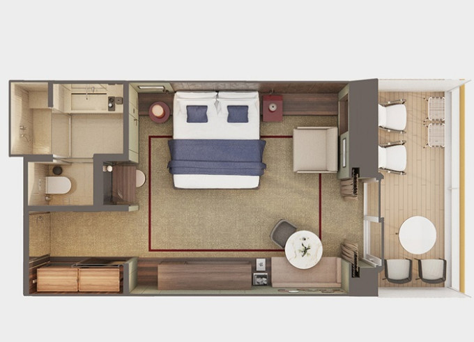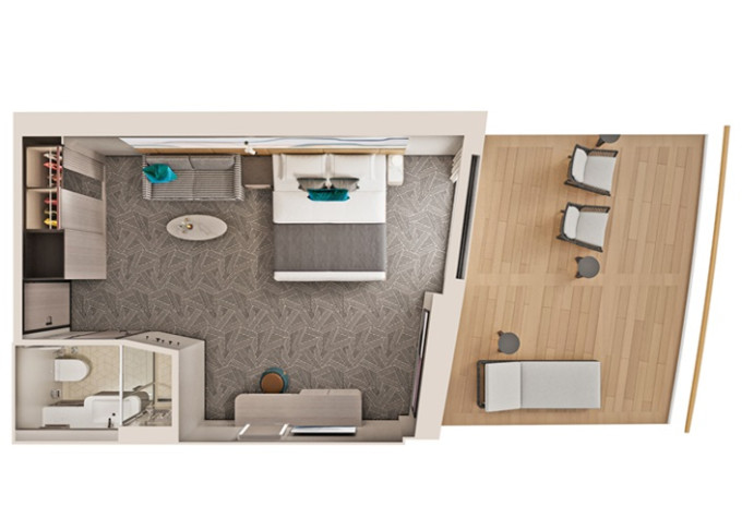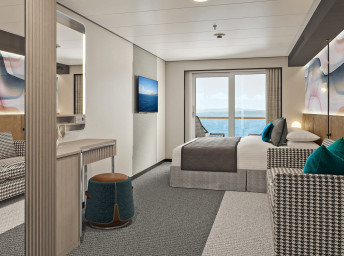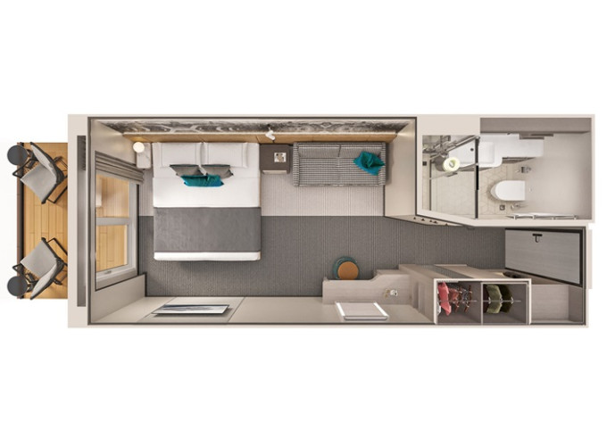 | SH -Suite s velkým balkónem na zádi 25 m² / balkón 34 m². 9. paluba - vzadu. Max 4 osoby. Výhody Suite. | 370 009 Kč 185 005 Kč za osobu | ||