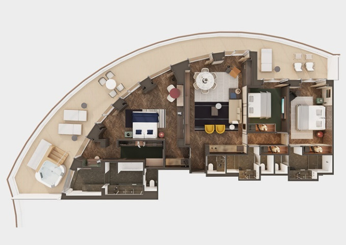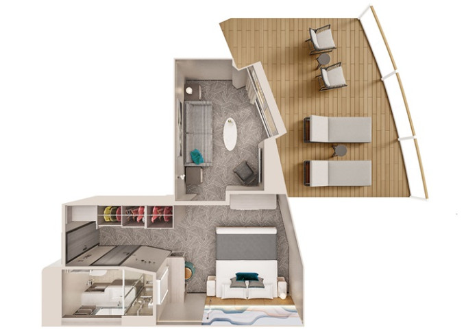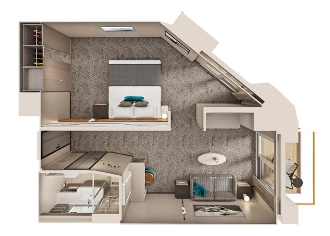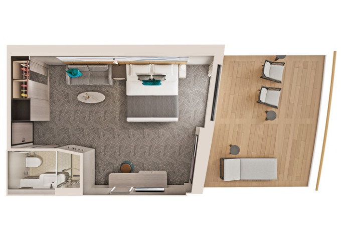 | H5 - Apartmá The Haven Owner's Suite s velkým balkónem 40-45 m² / balkón 10-12 m².12. paluba, Max 4 osoby. Výhody The Haven | 546 395 Kč 273 198 Kč za osobu | ||