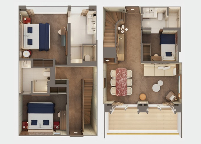 | H8 - Apartmá The Heaven Duplex Suita s velkým balkónem Dvoupodlažní apartmá. 74 m² / balkón 13 m².15/16. paluba. Max 6 osob. Výhody The Haven. | 635 841 Kč 317 920 Kč za osobu | ||