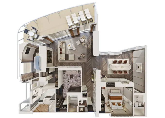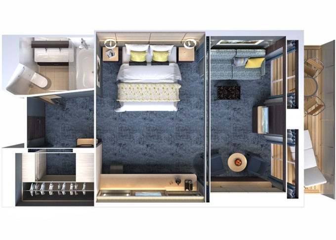 | H6 - The Haven Family Villa - 2 ložnice 50 m² / balkon 4 m². Výhody The Haven. 18. paluba vpředu. Max 6 osob. | 454 193 Kč 227 097 Kč za osobu | ||
