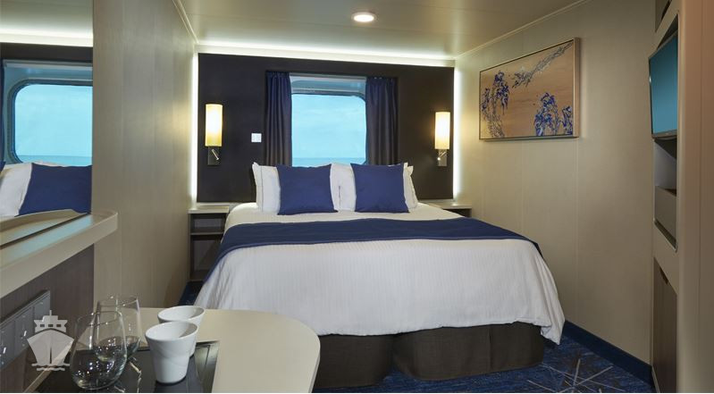 | OB - Vnější kajuta s velkým oknem od 15 m². Velké neotevíratelné okno. 5. paluba - centrálně. Max 2 osoby. | 102 424 Kč 51 212 Kč za osobu | ||