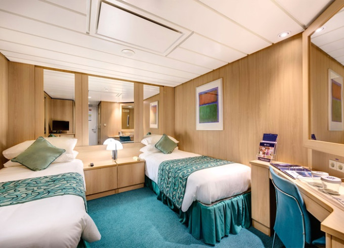 • ubytování v plně vybavené kajutě: vlastní koupelna se sprchou a WC, interaktivní TV, telefon, trezor, vysoušeč vlasů, regulovatelná klimatizace, minibar (za poplatek), Wi-fi (za poplatek)
