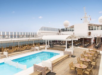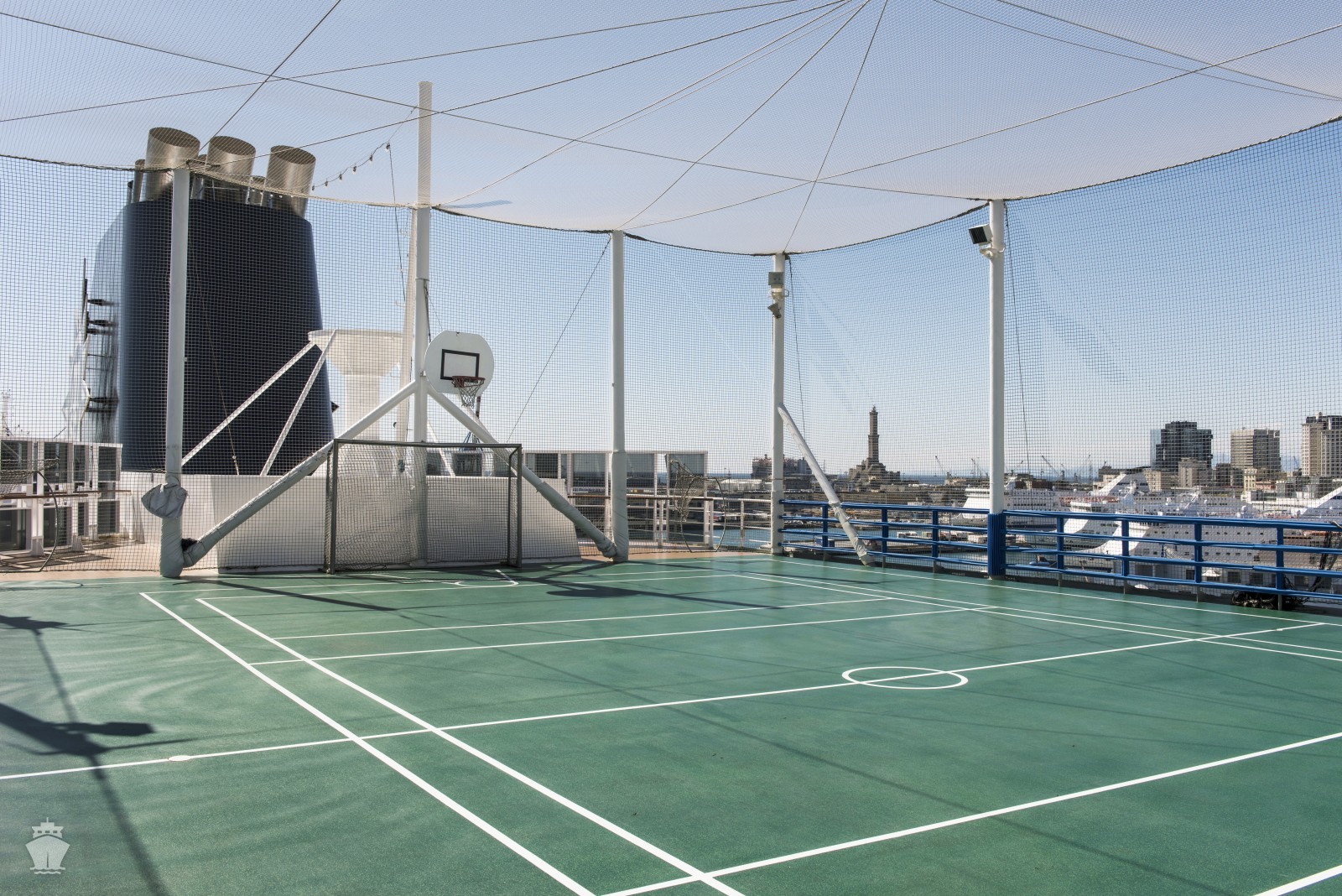 • sportovní aktivity na otevřených palubách (jogging, basketbal, fotbal, tenis), bazény a lehátka