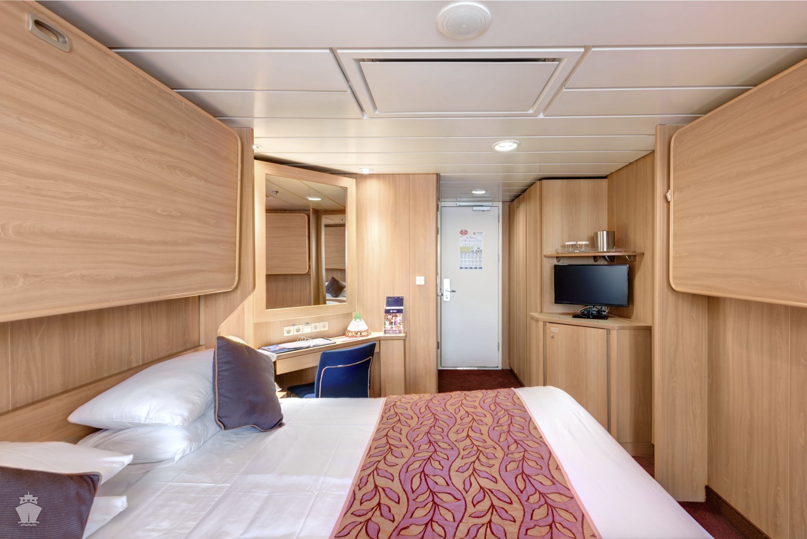 Kajuta vnitřní:  12 - 13 m², kajuta s manželskou postelí (na požádání 2 oddělené postele) a 1-2 vyklápěcí horní lůžka. Klimatizace, koupelna se sprchou a WC, toaletní stolek, skříň, interaktivní TV, minibar, sejf, telefon, vysoušeč vlasů.